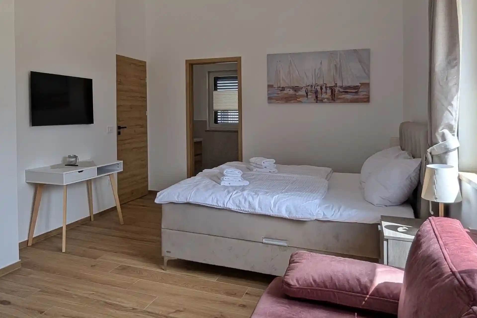 3 Schlafzimmer mit eigenem Bad, Boxspringbetten und Ausziehcouch