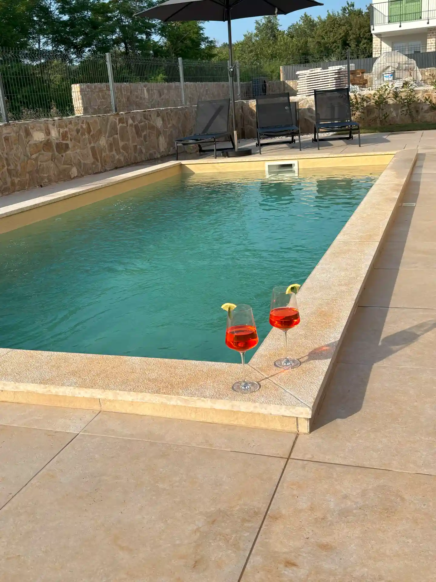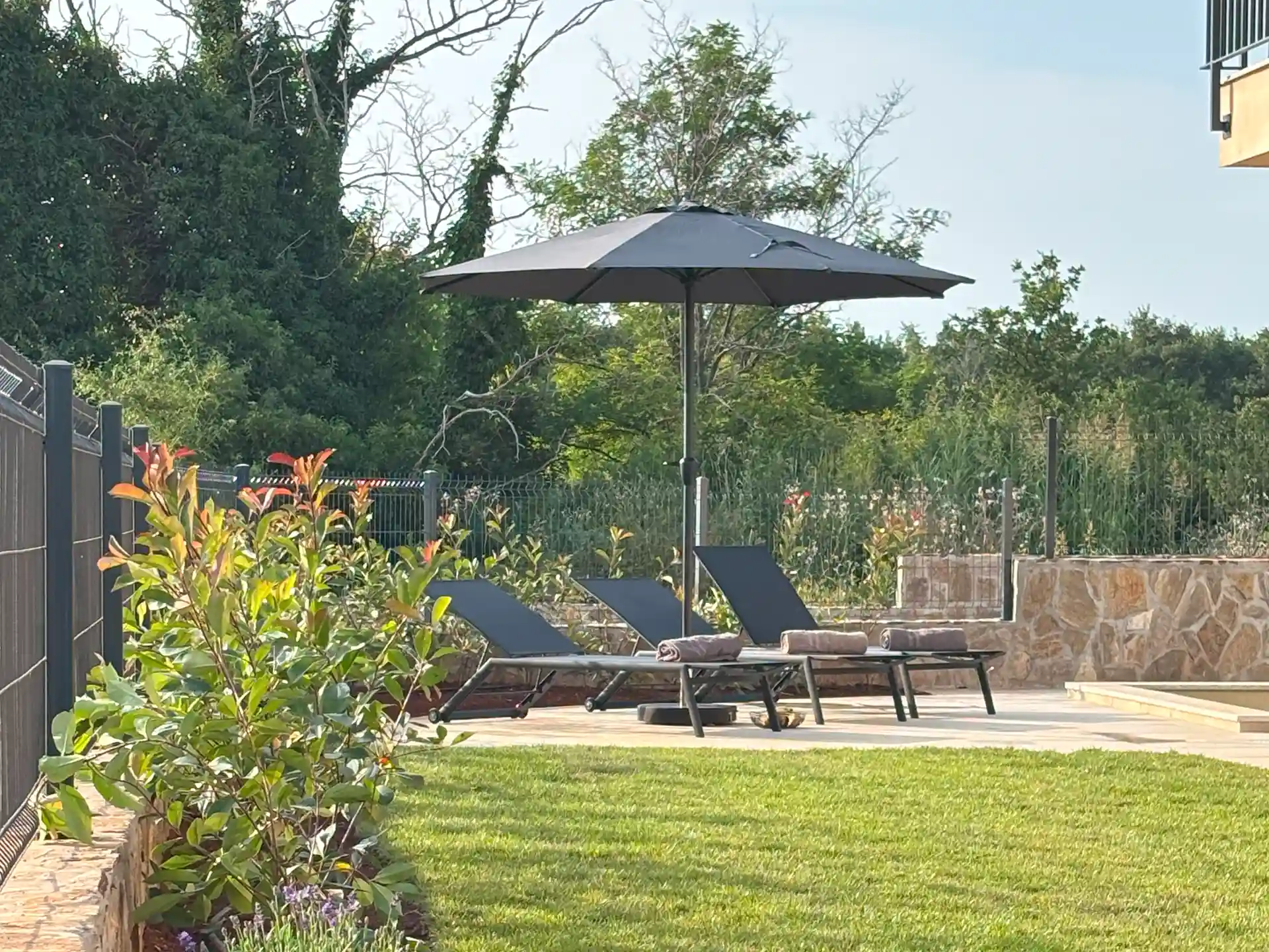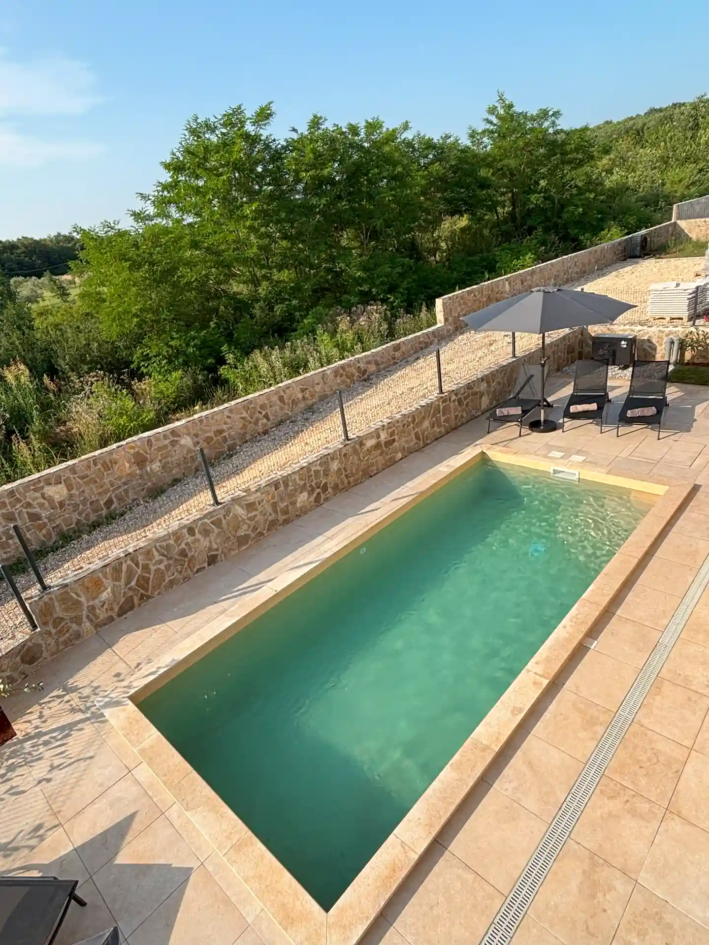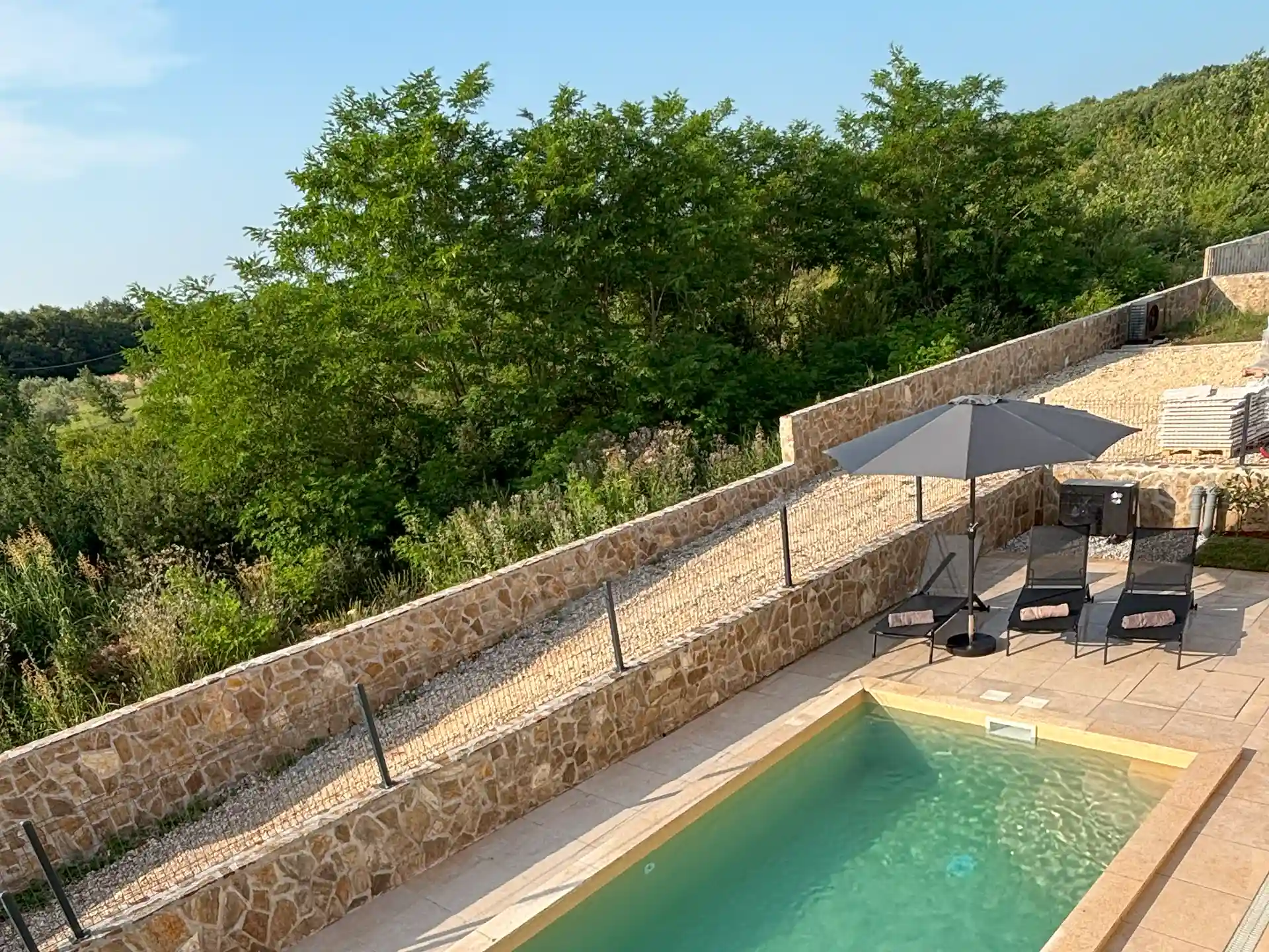 Beheizbarer Außenpool mit Sonnenliegen & Solaraußendusche