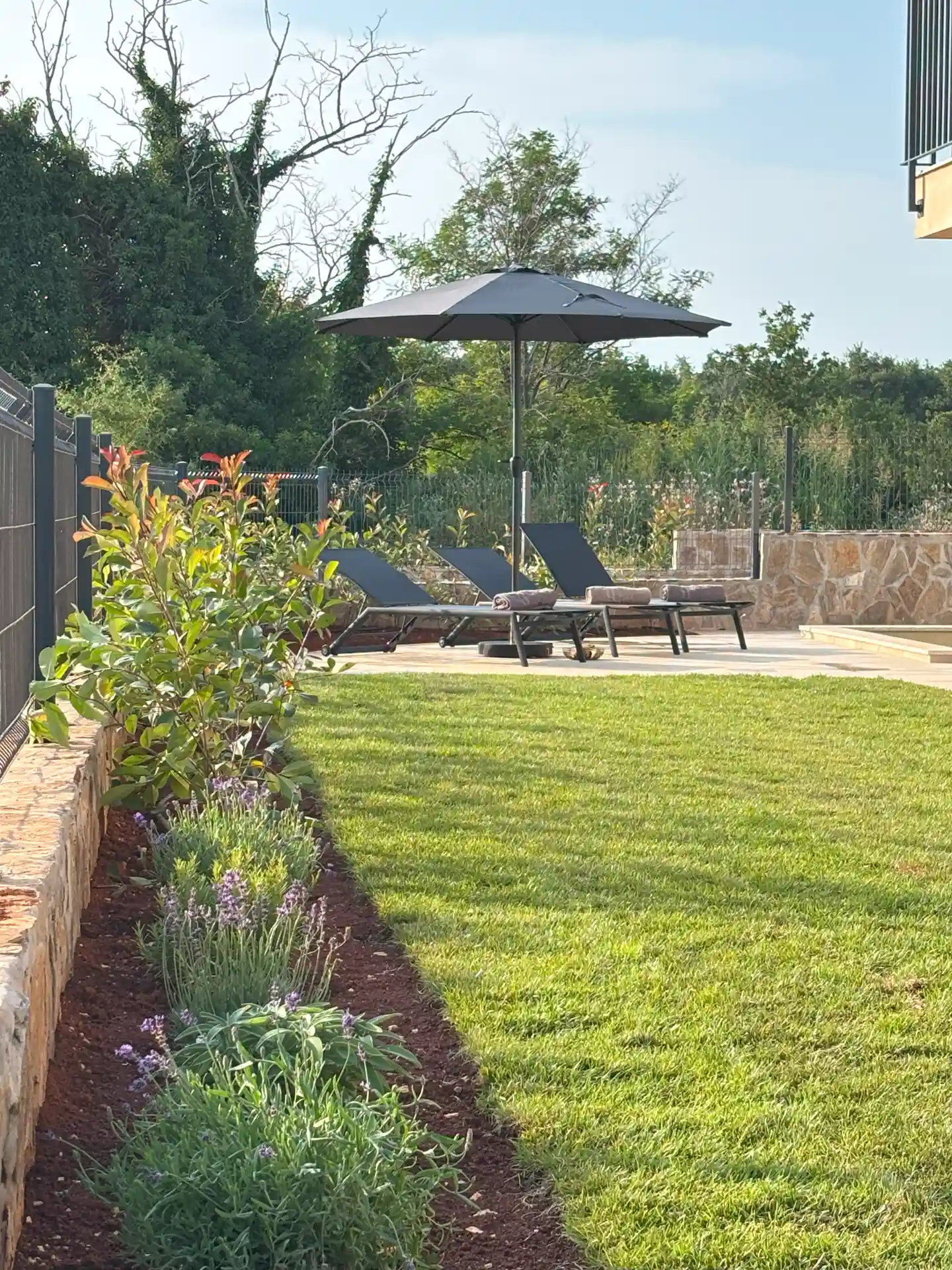 Das Grundstück ist komplett umzäunt und kann abgeschlossen werden.